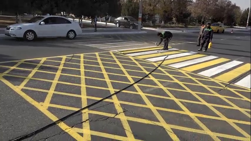 Навоийда тартибга солинмаган пиёдалар ўтиш жойларидан олдин тажриба сифатида "вафель" чизи...