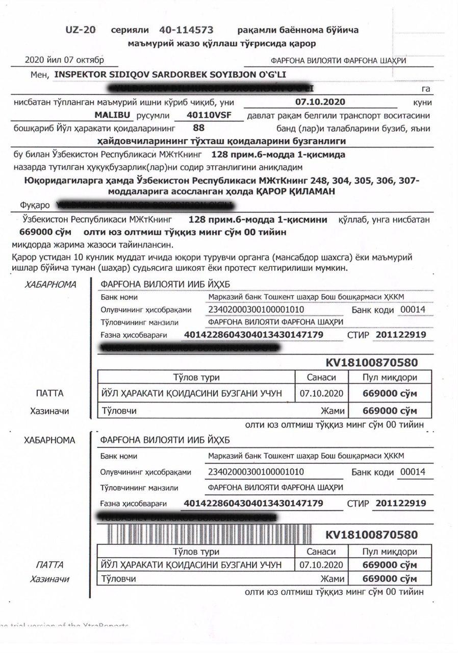 Суғурта полиси бўйича талаблар бузилганда жарима белгиланади, аммо транспорт воситаси жари...