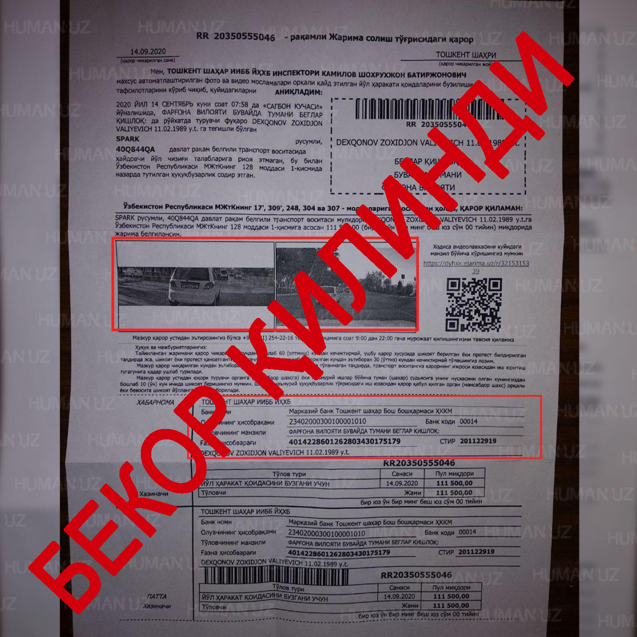 Ижтимоий тармоқда “Матиз қоидабузарлик содир этди. Жарима Спаркка юборилди” сарлавҳаси ост...