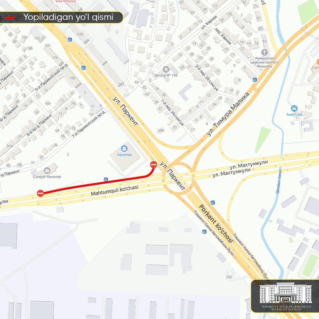 Пойтахтда Паркент кўчасидан Махтумқули кўчасига ўтиш йўли вақтинча ёпилмоқда