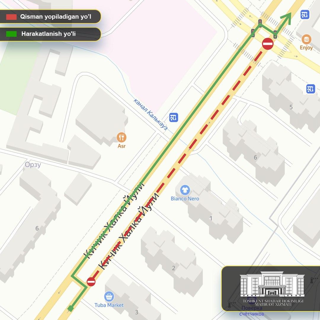 Олмазор тумани КХАЙ кўчасининг айрим қисмлари вақтинча ёпилмоқда