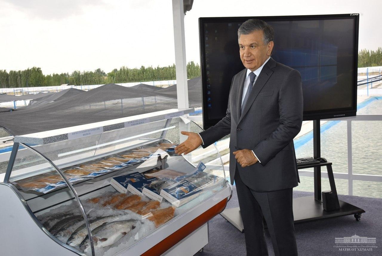 Шавкат Мирзиёев Учқўрғон тумани Норин дарёси бўйида жойлашган ноёб балиқ турларини ишлаб ч...
