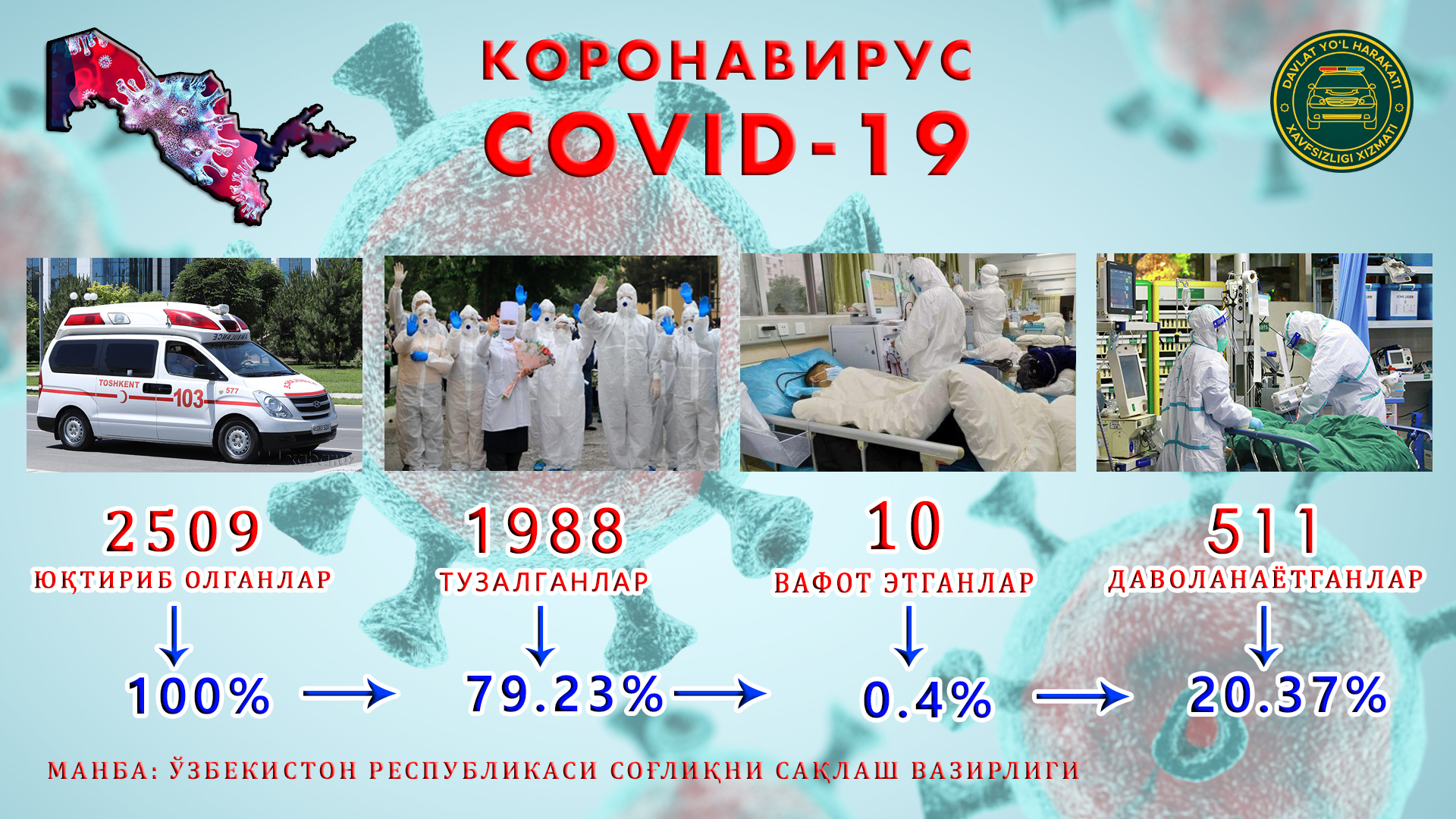 РЕСПУБЛИКАМИЗДА ЖОРИЙ ЙИЛ 11 МАЙ КУНИ СОАТ 16:00 ҲОЛАТИГА КЎРА КОРОНАВИРУС ПАНДЕМИЯСИ РАҚА...
