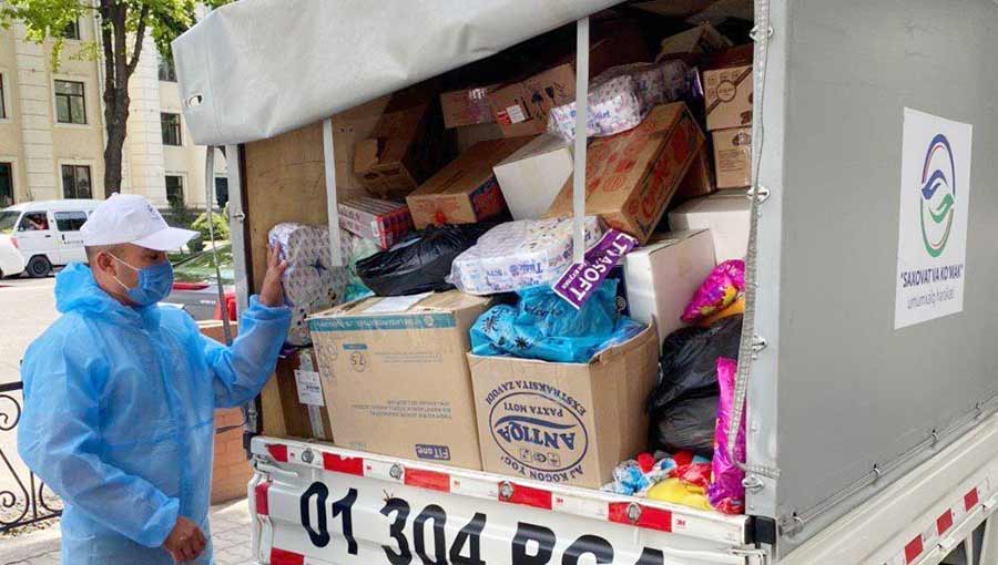 Тошкент шаҳар Мирзо Улуғбек туманидан Сирдарёга отланган навбатдаги кўмак карвони, халқими...