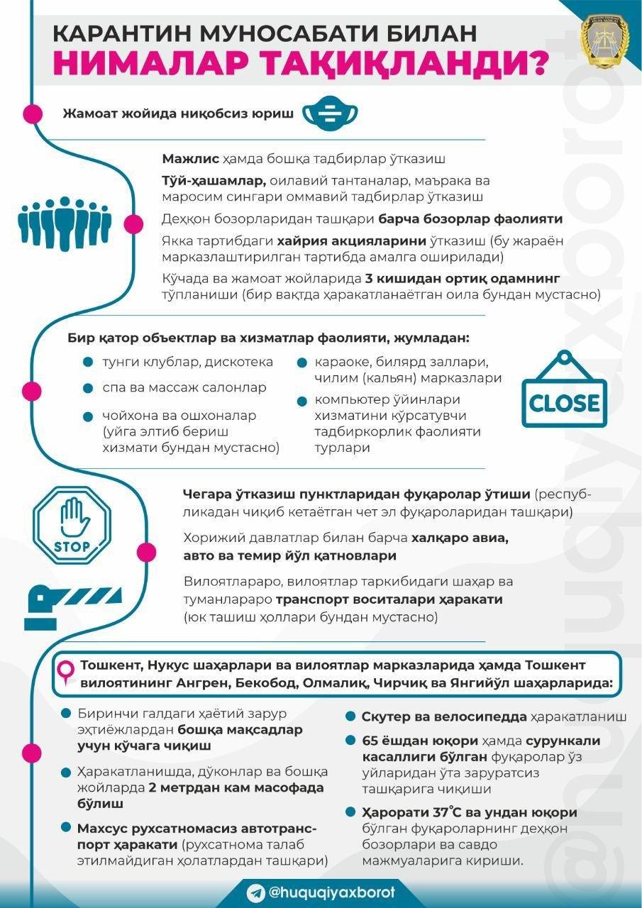 Карантин муносабати билан нималар тақиқланди?