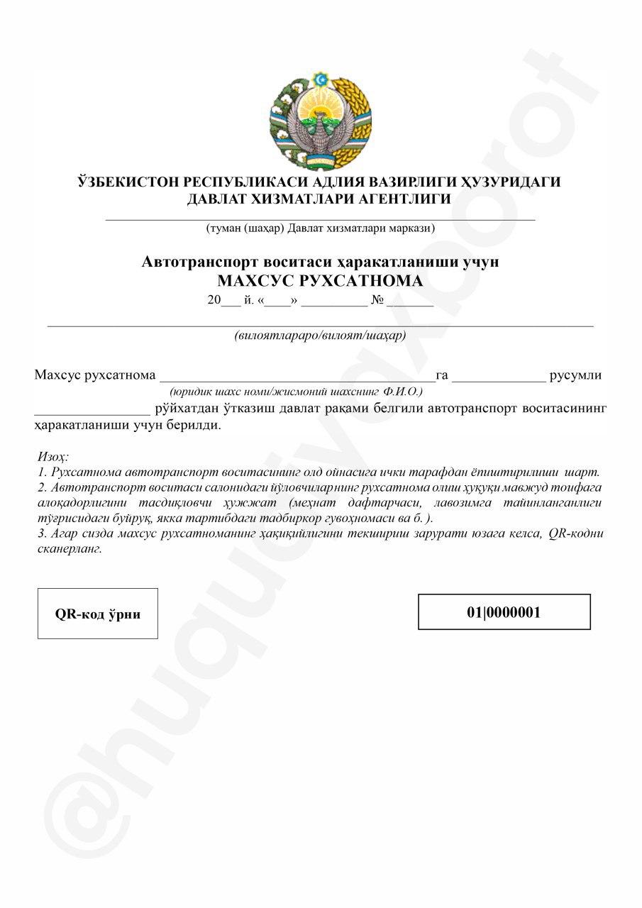 Махсус рухсатнома намунаси
